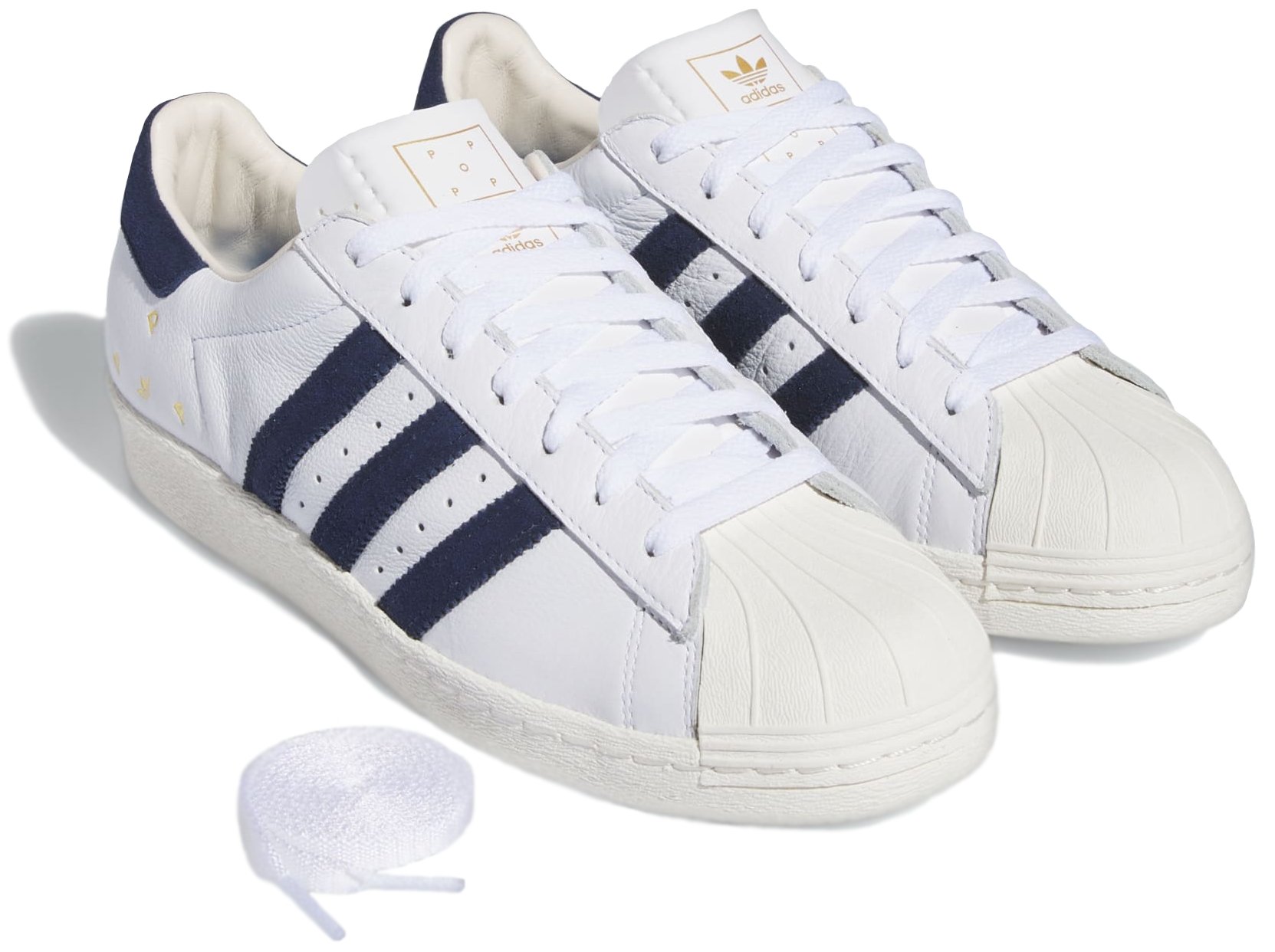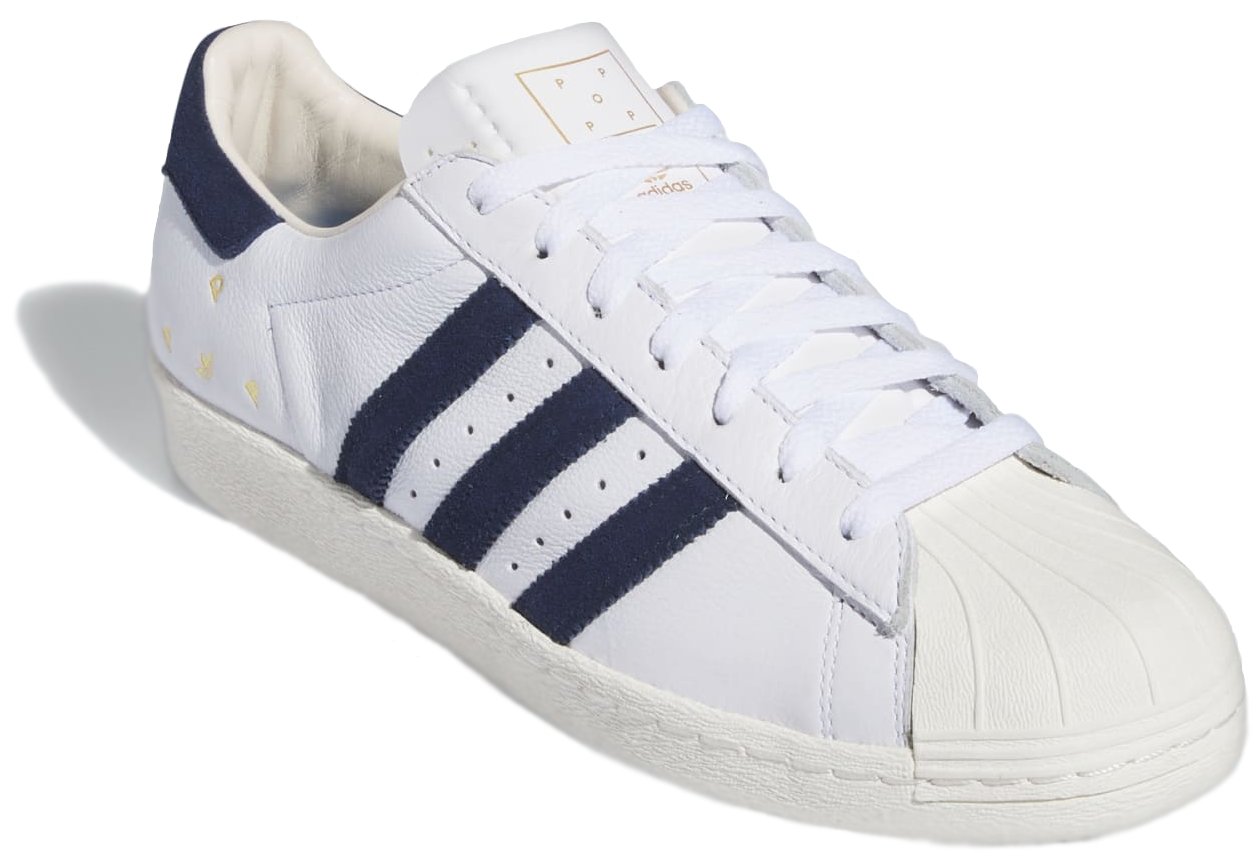 Po sukcesie debiutanckiej kolekcji, Pop przygotował kolejną dopracowaną historię i zestaw produktów. Nowa odsłona to odejście od technicznego stylu outdoorowego na rzecz estetyki głęboko zakorzenionej w historii marki adidas. Projekt ten jest efektem prawdziwej współpracy – widoczne są w nim liczne detale charakterystyczne dla obu marek. Model Pop Superstar ADV to połączenie najwyższej jakości wykończeń z kultowymi butami adidas Superstar. Złote akcenty i minimalistyczne logo nadają klasycznemu modelowi nowy wymiar. Pop Superstar ADV posiada zdekonstruowaną skórzaną cholewkę z zamszowymi trzema paskami, język inspirowany stylem vintage oraz logo Pop. Ten model łączy styl retro z elastyczną podeszwą typu cupsole, tworząc sylwetkę idealną do jazdy na deskorolce.