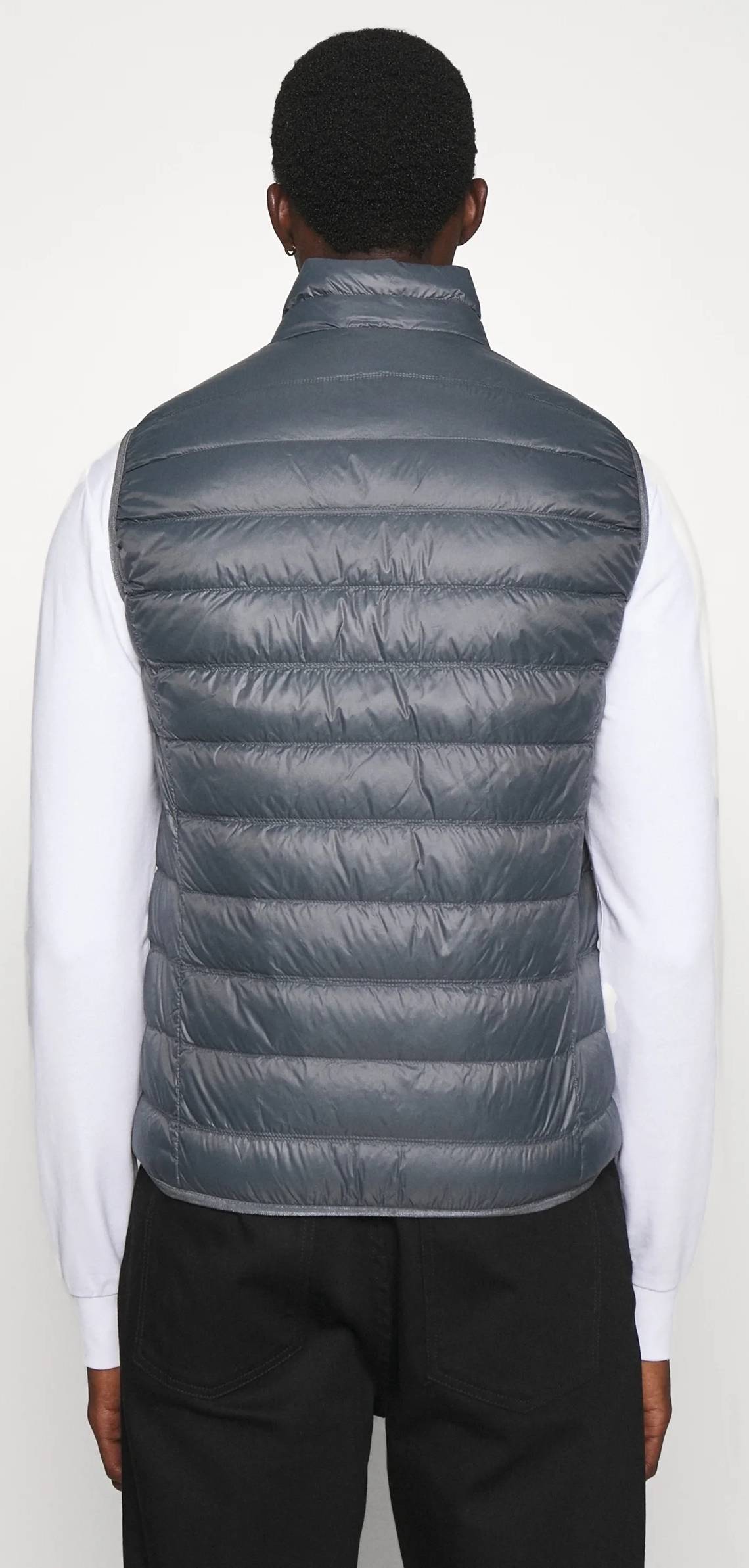 Bezrękawnik uszyto w 100% z przetworzonego poliestru. Wypełnienie ocieplające wykonano z naturalnego puchu.