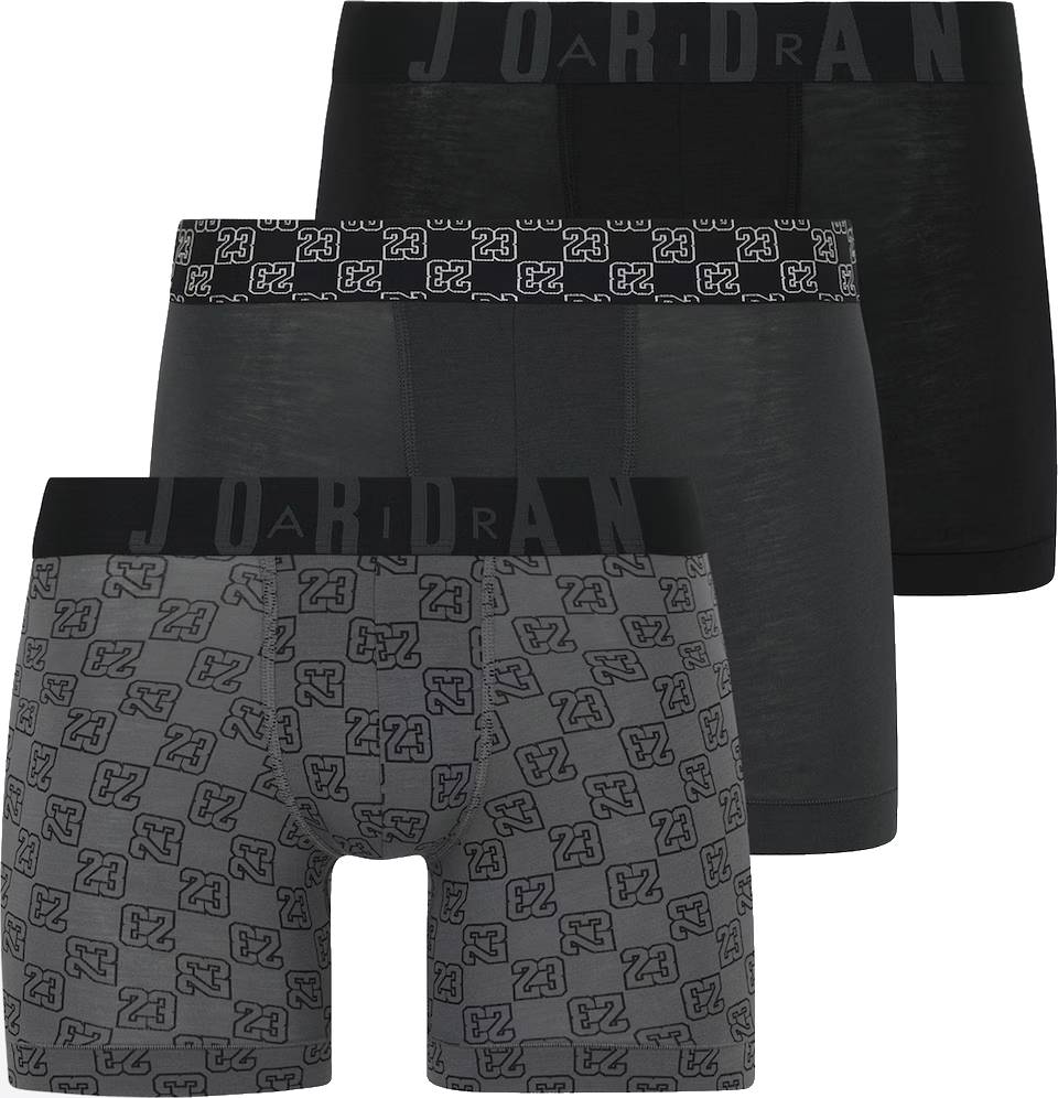 Klasyczne męskie bokserki Jordan 3-pak z najnowszej kolekcji. Wykonane z wysokiej jakości, miękkiego i oddychającego materiału, zapewniającego maksymalny komfort noszenia przez cały dzień. Bokserki posiadają staranne przeszycia z przodu i z tyłu, które zwiększają trwałość oraz idealne dopasowanie do sylwetki. Wykończone szeroką, elastyczną gumką z logo Jordan oraz charakterystycznym motywem „23”, który nadaje im sportowego, nowoczesnego wyglądu.