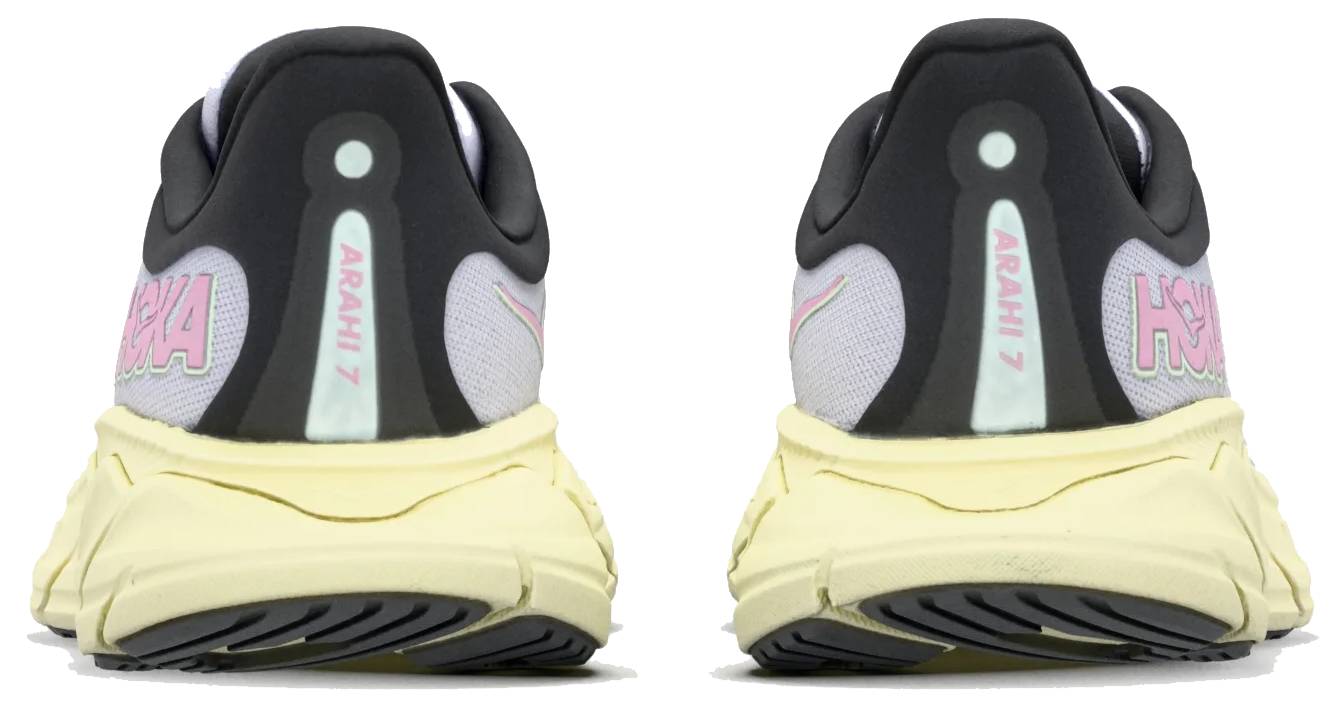 Hoka One One ARAHI 7 to buty jedne z pierwszych w swoim rodzaju od Hoka. Sprawdzą się one idealnie do treningu dla tych, którzy lubią tradycyjne uczucie, jakie daje obuwie Hoka, ale chcieliby mocniejszej amortyzacji. Podeszwy wewnętrzne w Hoka ARAHI 7 są wykonane z pianki CMEVA, która zapewnia pierwszorzędną amortyzację, ale bez poczucia, że stopa zatapia się w bucie. Z tyłu buta Hoka zastosowano technologię SwallowTail. Oznacza to, że pięta skierowana jest nieco na bok, co zapewnia bardziej stabilny bieg, w którym zawsze czujesz, że twoja stopa ląduje wygodnie i bezpiecznie. Cholewki wykonane są z lekkiego siateczkowego materiału, który jest wysoce oddychający i doskonale dopasowuje się do stopy, a dodatkowo przewidziano dodatkową przestrzeń na ścięgno Achillesa. Ponadto buty wyposażone są w klasyczny rocker Hoka, który ułatwia stawianie każdego kroku.