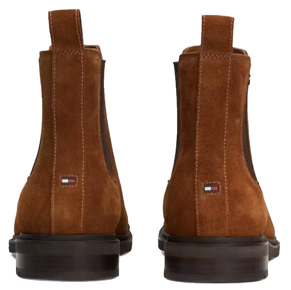 Brązowe sztyblety męskie Tommy Hilfiger wykonane z wysokiej jakości zamszu. Klasyczny fason z elastycznymi wstawkami po bokach ułatwia zakładanie i zapewnia wygodne dopasowanie. Ciemna podeszwa z delikatnym bieżnikiem gwarantuje komfort i stabilność. Stylowy, ponadczasowy model idealny zarówno do casualowych, jak i eleganckich stylizacji.