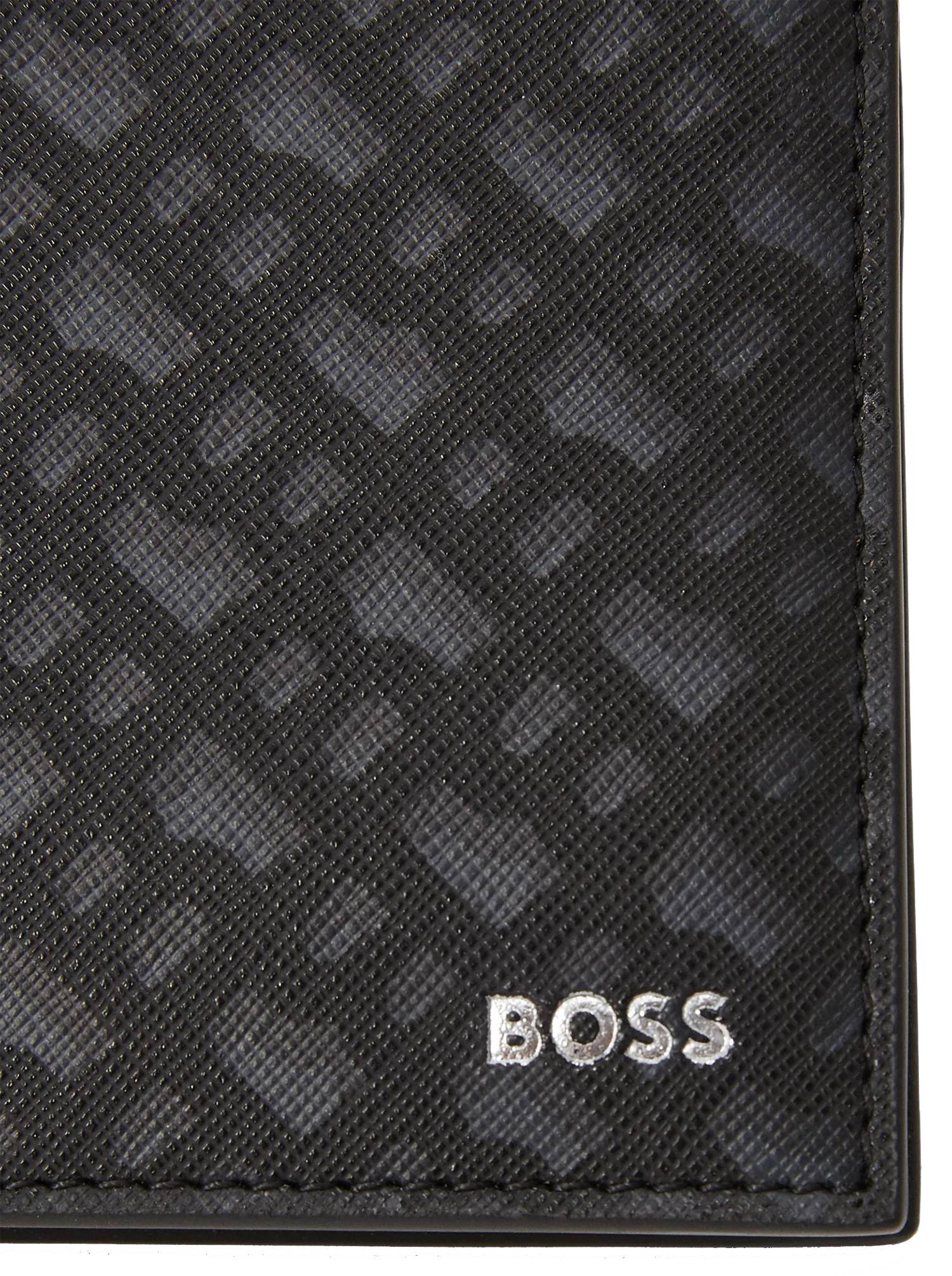 Klasyczny portfel męski wykonany ze skóry ekologicznej marki Hugo Boss w kolorze czarnym. Praktyczne przegrowy na karty i banknoty. Model posiada kieszonkę na monety zapinaną na zatrzask. Na froncie wypukłe logo w postaci napisu BOSS.